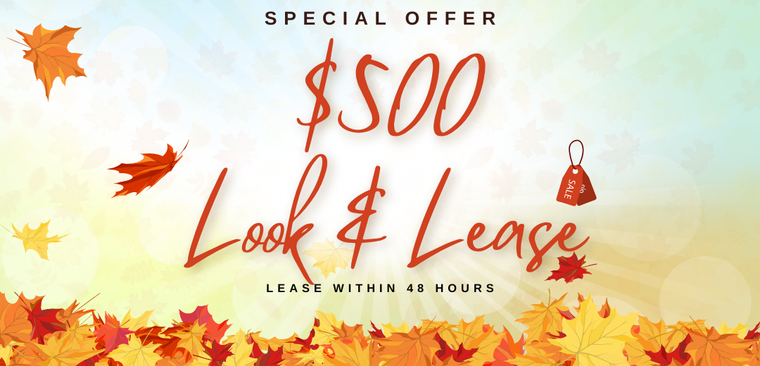 We're offering a $500 Look & Lease special on select apartment homes when you lease within 48 hours of touring! Don't miss this limited time deal!